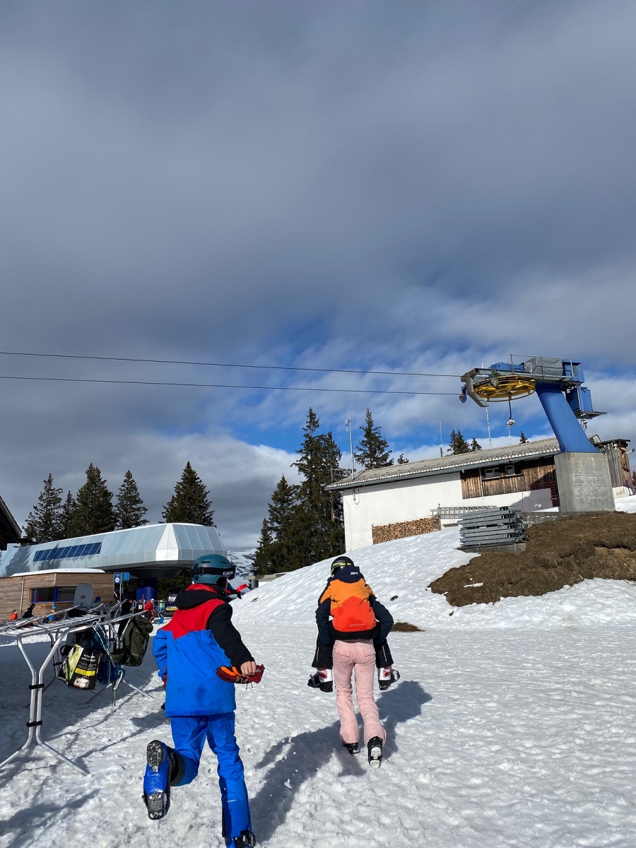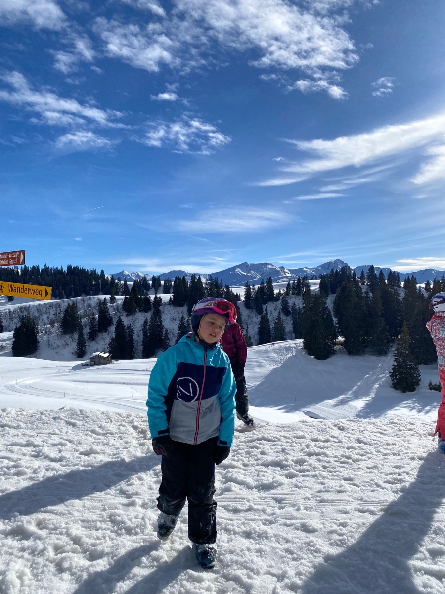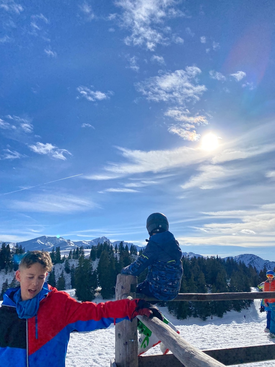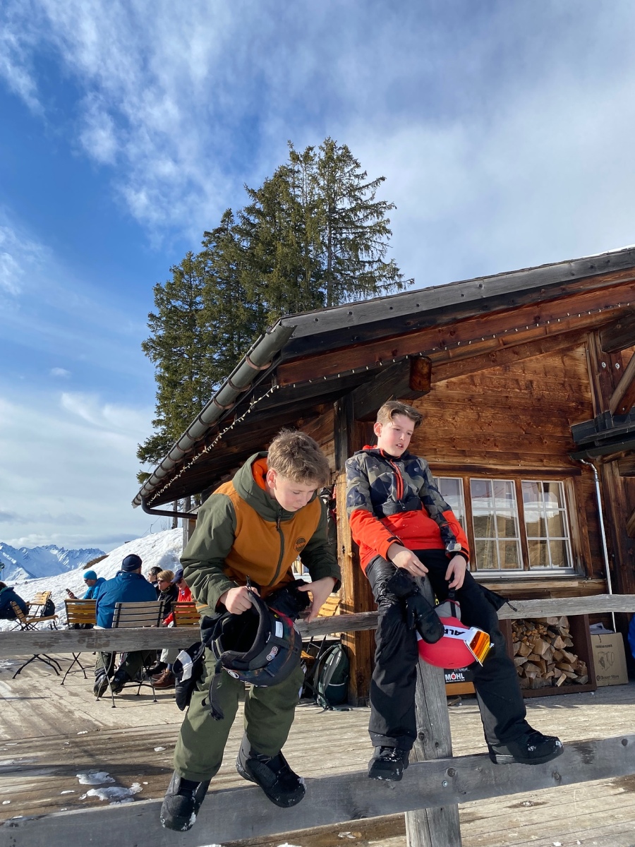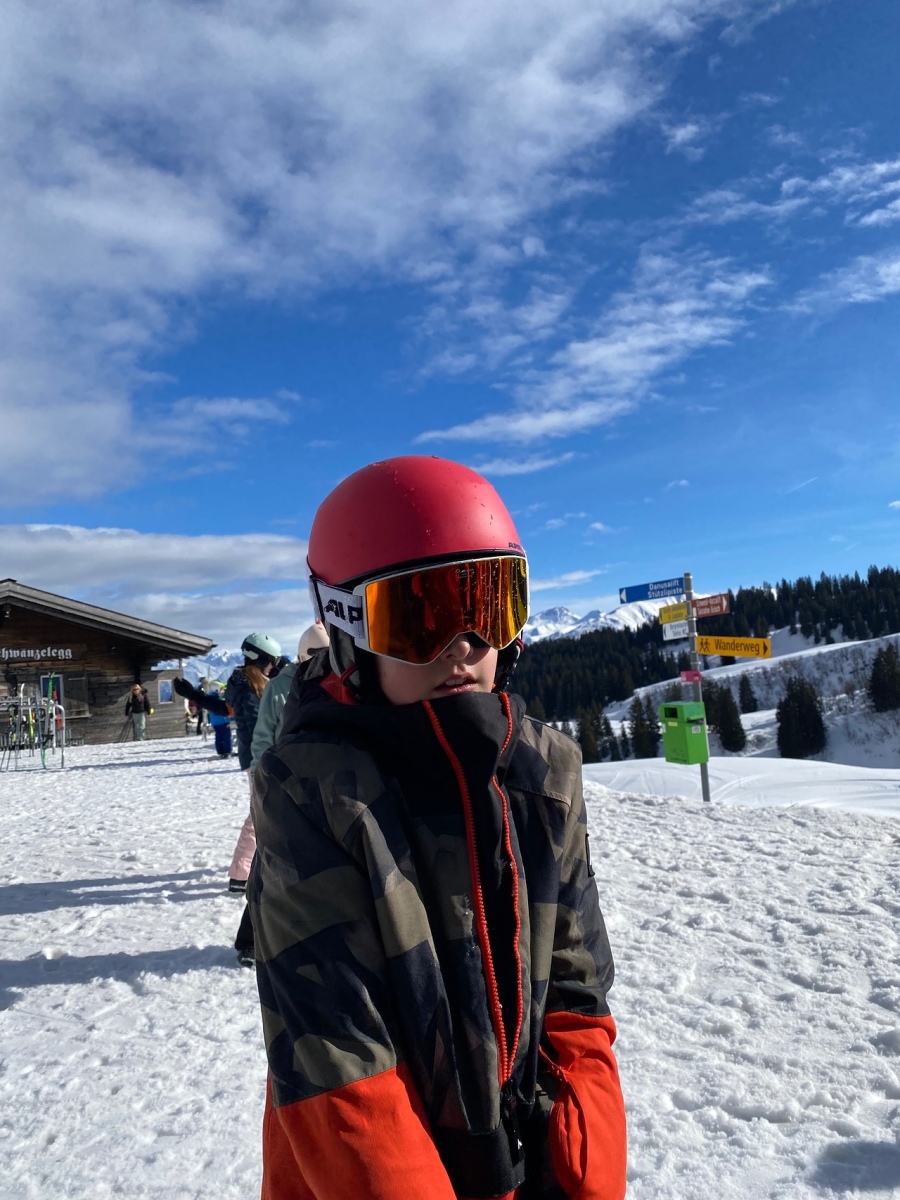 Heute Morgen standen wir auf und sind frühstücken gegangen. Zum Frühstück gab es wie immer das Gleiche und zwar Brot, Gipfeli, Nutella und noch vieles mehr. Um 9:10 Uhr mussten zwei Gruppen draussen bereit stehen und um 9:15 der Rest. Dann gingen alle Gruppen Ski und Snowboard fahren.
