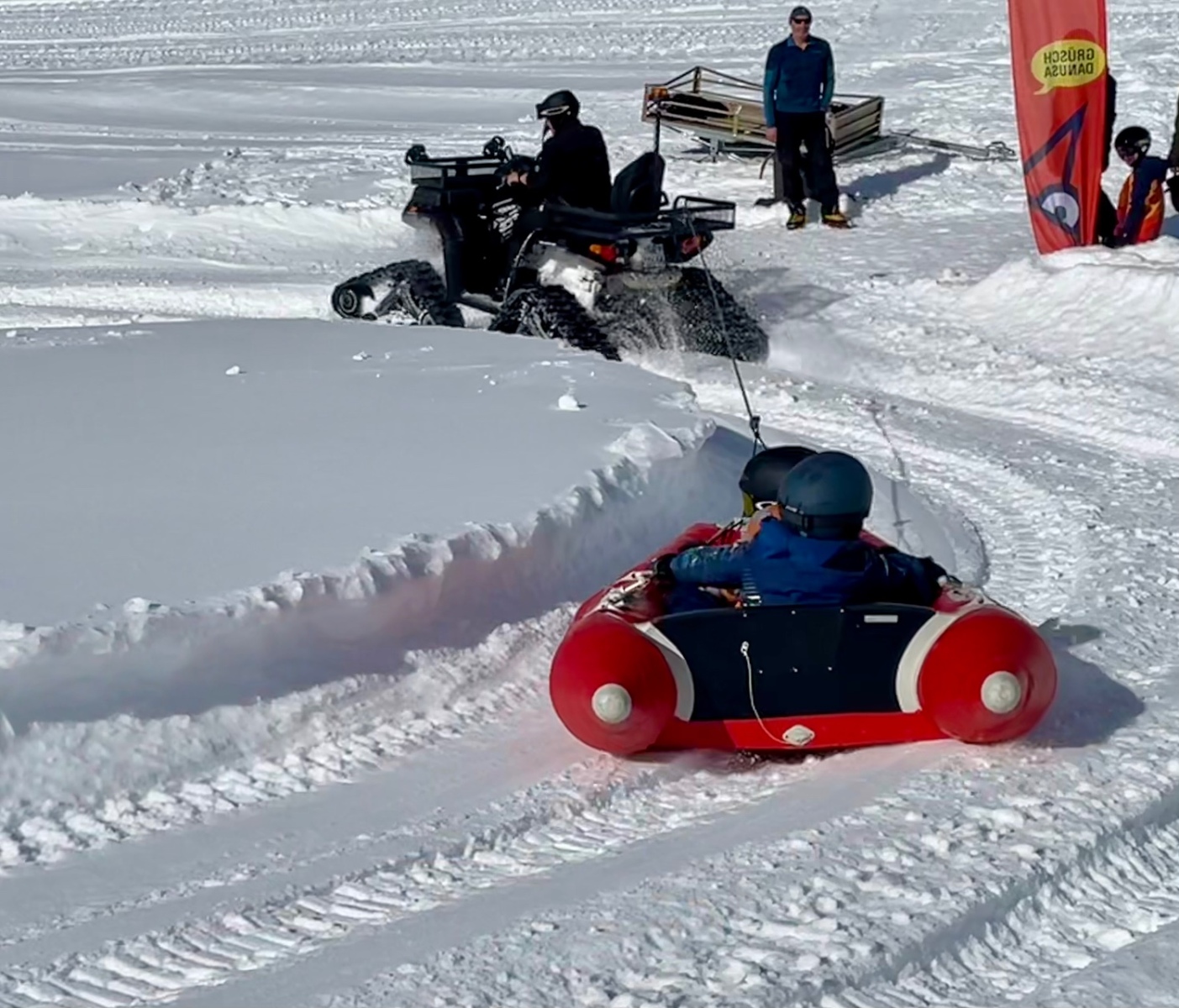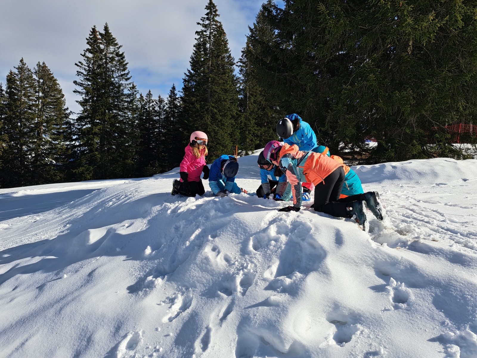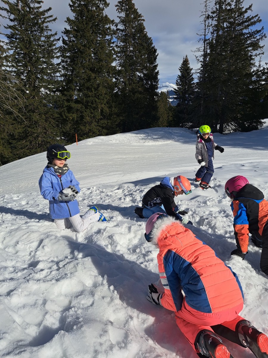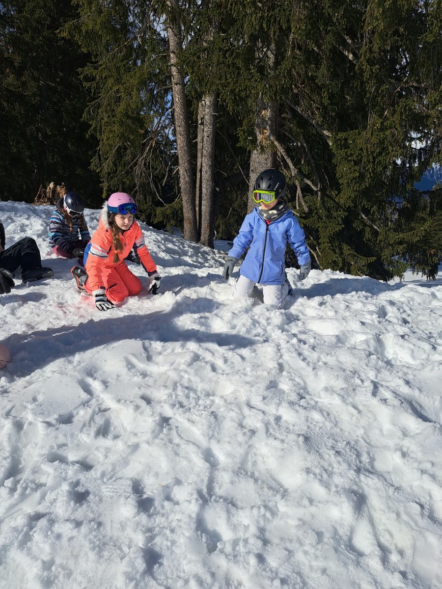 Weil heute ein spezieller Tag war, machen wir verschiedene Posten. Einer davon war ganz viele Schneebälle auf jeden zu schiessen, also eine Schneeballschlacht. Der zweit davon war mit einem Schneeboot durch den dicken Schnee gezogen zu werden. Danach kam der dritte Posten. Wir durften alle Nägel in einen Holzblock schlagen. Die drei schnellsten Zweierteams bekamen einen Preis. Danach gingen wir müde aber auch gut gelaunt nach Hause. Danach assen wir Abendessen und schauten einen Film.