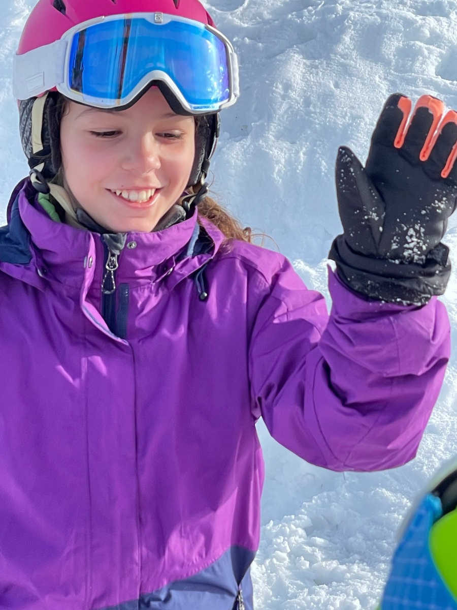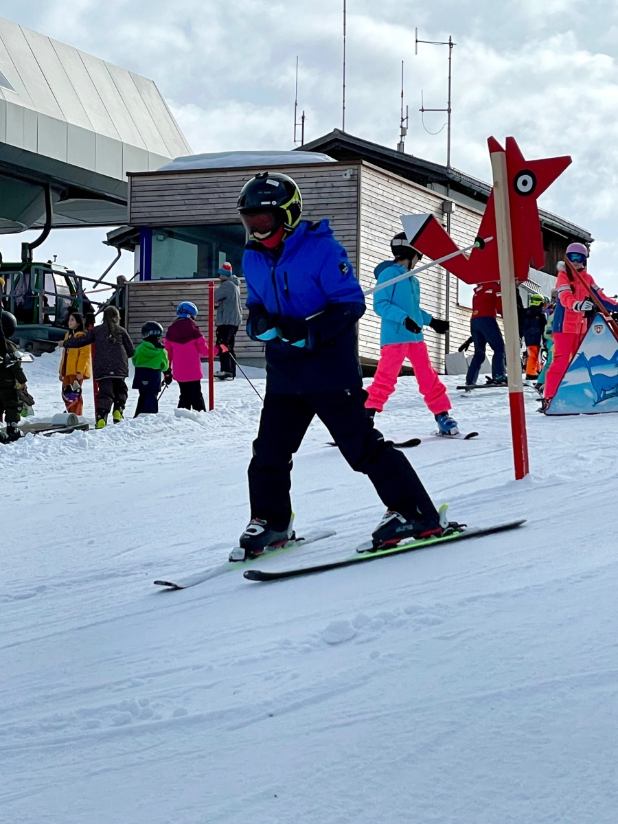 Am Mittwochmorgen sind wir ganz normal und cool aus dem Nebenhaus ins Haupthaus zum Frühstück gegangen. Es gab Brötchen und fast alle möglichen Bestriche. Wir machten uns bereit fürs Skifahren und gingen los auf die Gondeln. In der Gondel sahen wir wunderschönen Sonnenschein und schon waren wir auf dem Berg.