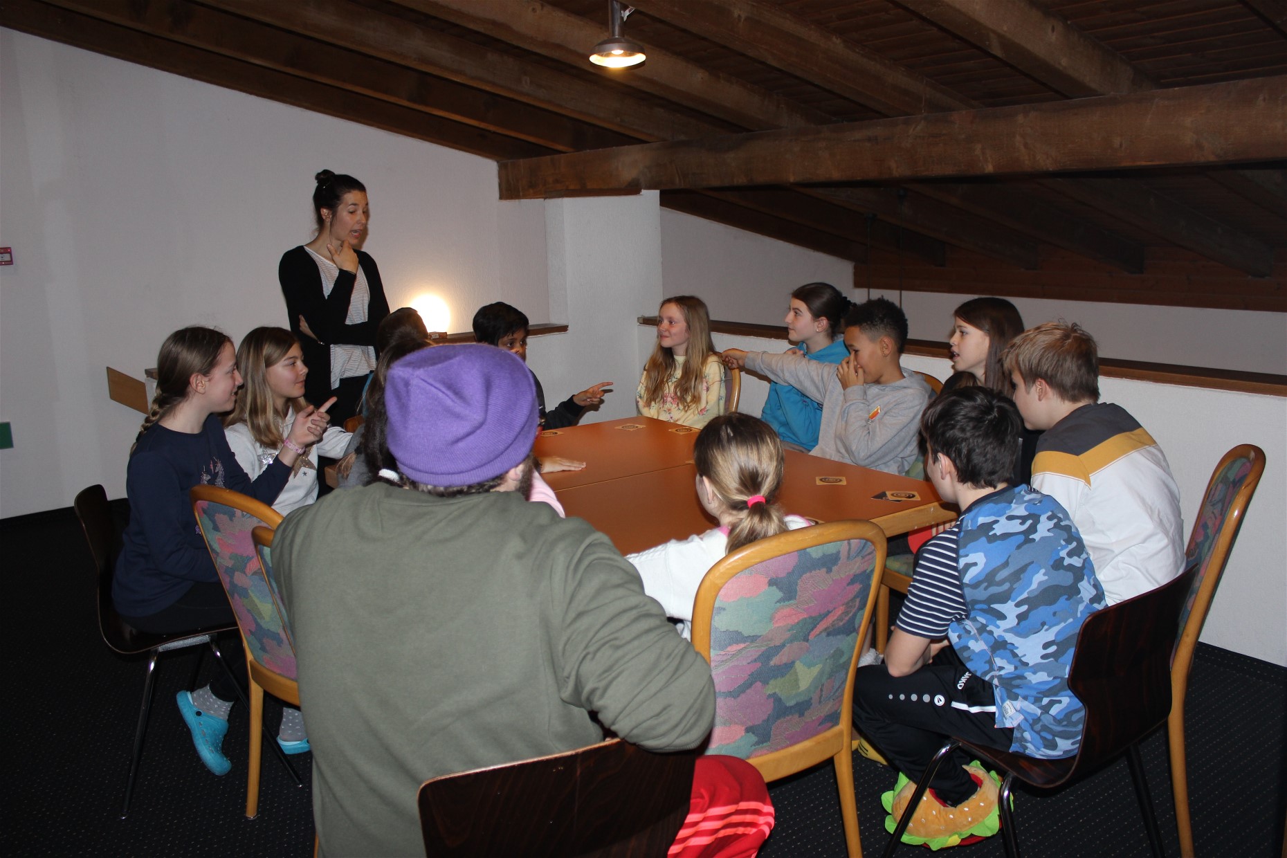 Es gab Salat, Kartoffelstock mit Sauce und Fleischkäse. Nach dem. Mittagessen haben wir das Gruppenfoto gemacht und im Schnee gespielt. Dann gingen wir wieder Skifahren. Als wir zurückkamen haben wir eine Zimmerstunde gemacht. Nach der Zimmerstunde sind wir wieder nach oben in den Gruppenraum gegangen und haben Z’vieri gegessen. Dann gingen wir runter und haben Z’Nacht gegessen. Nach dem Essen hat die Preisverkündigung von der Gameshow stattgefunden. Wir haben Süssigkeiten gewonnen. Im Moment spielen wir mit den Leitern und nachher findet bald das Abendprogramm statt.