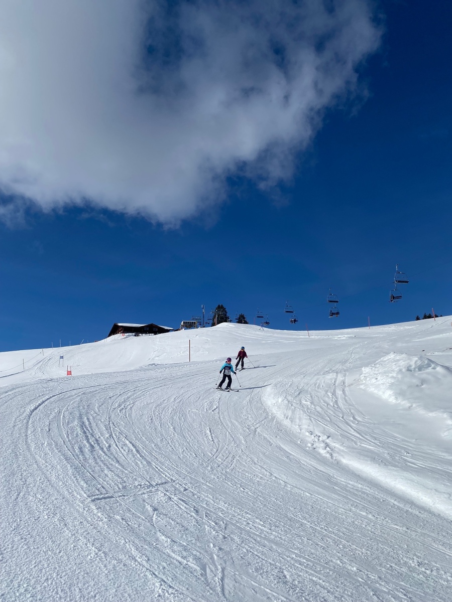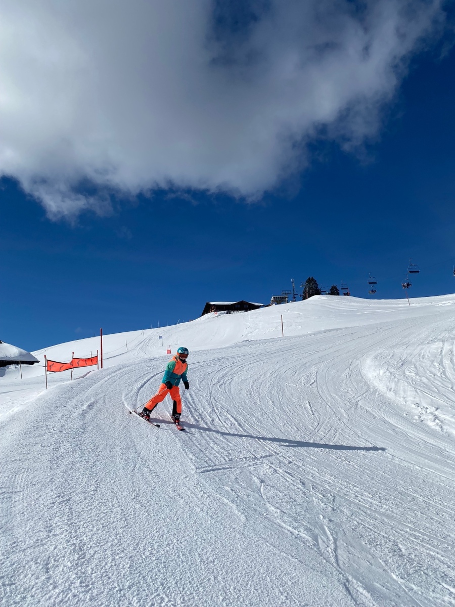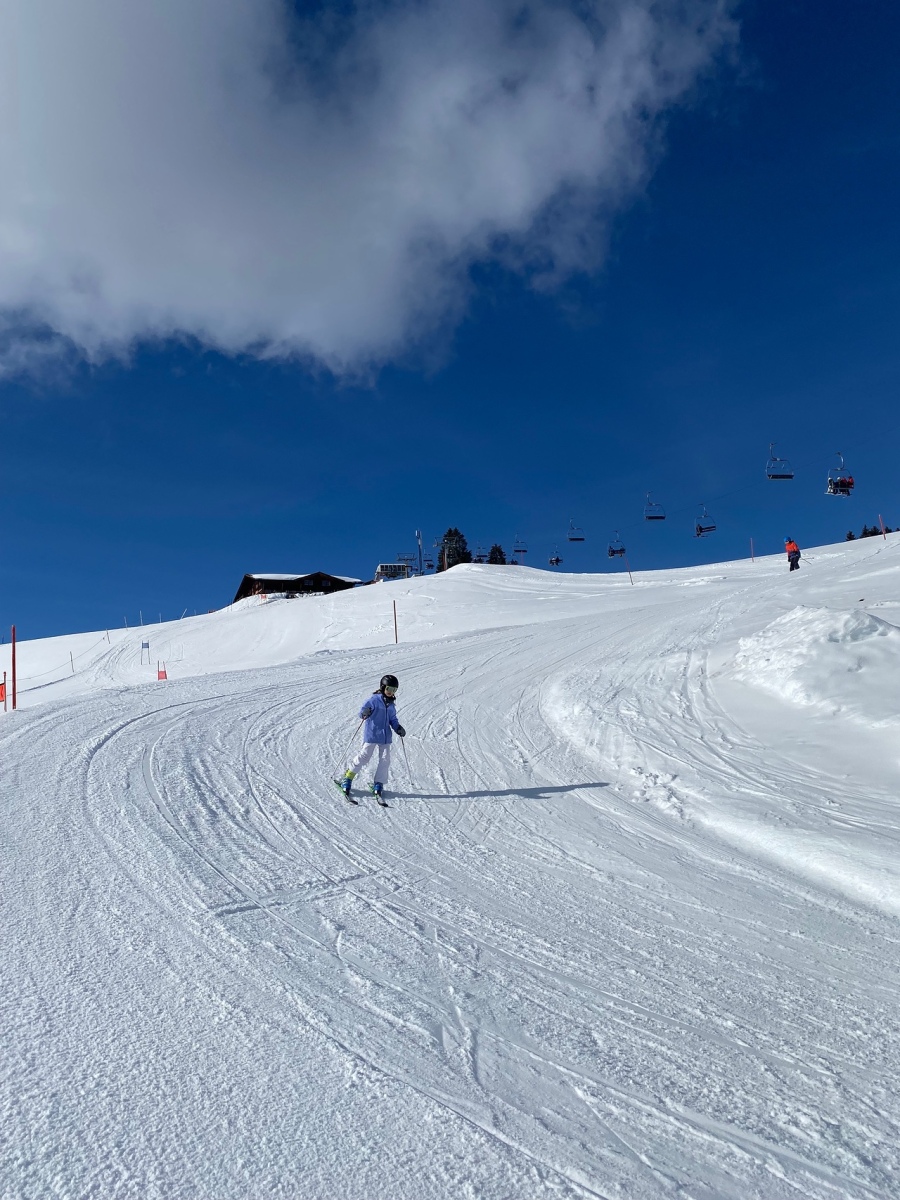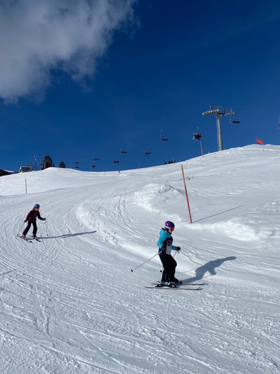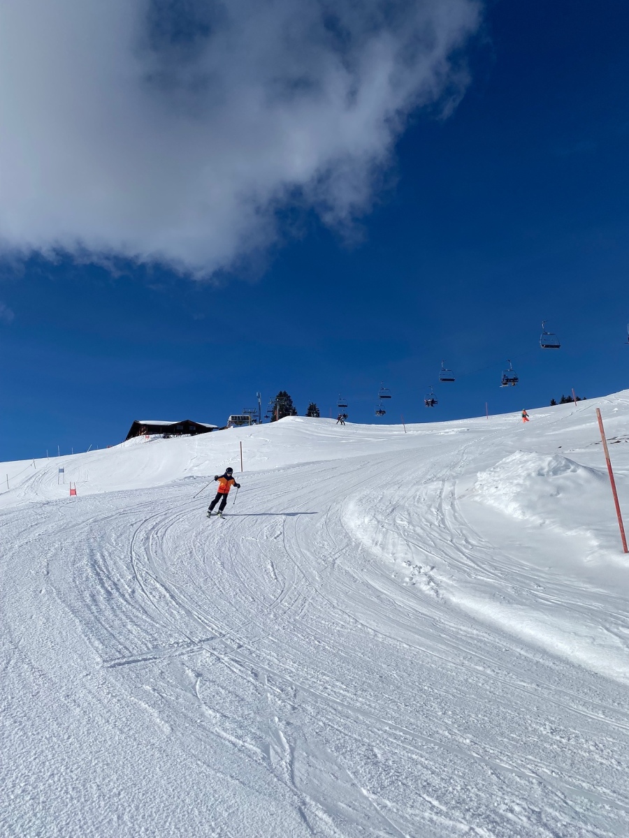 Wieder einmal nach einem sehr leckeren Frühstück, gingen wir gut gelaunt auf die Piste. Auf der Piste hat es uns übermässig gut gefallen. Zum Zmittagessen gab es Fleisch und Kartoffelstock, für einige gab es Reis und Gemüse.