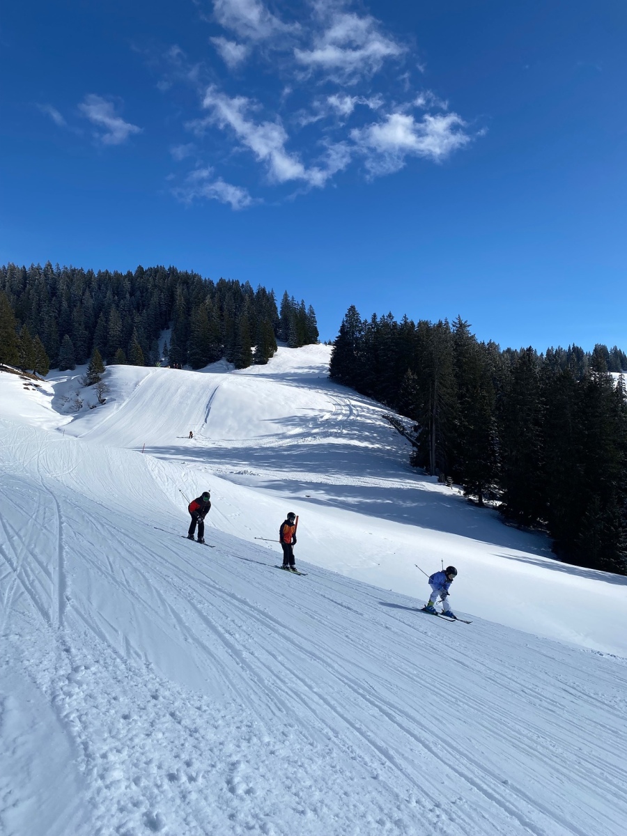 Wieder einmal nach einem sehr leckeren Frühstück, gingen wir gut gelaunt auf die Piste. Auf der Piste hat es uns übermässig gut gefallen. Zum Zmittagessen gab es Fleisch und Kartoffelstock, für einige gab es Reis und Gemüse.