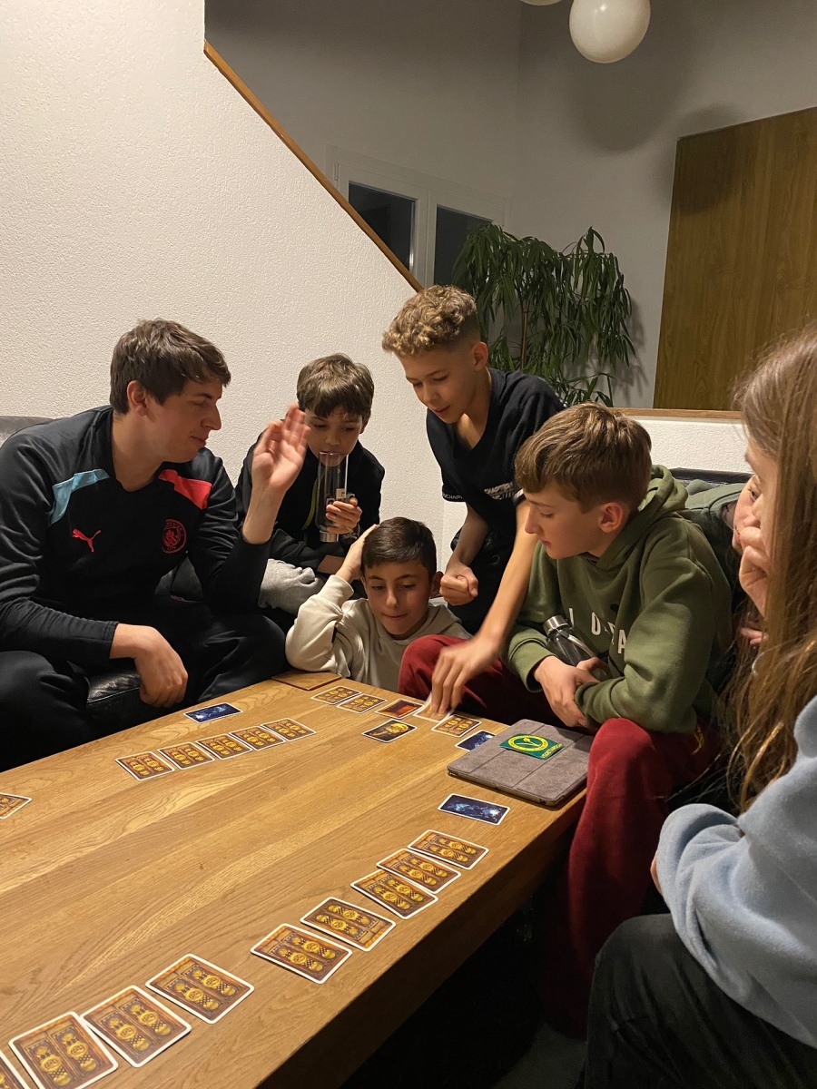 Am Nachmittag gingen wir wieder auf die Skier. Als wir im Hotel ankamen, haben wir bis zum Abendessen gespielt. Zum Znacht gab es zur Vorspeise Tomatensuppe und die Hauptspeise waren Fleischstücke und Spaghetti.